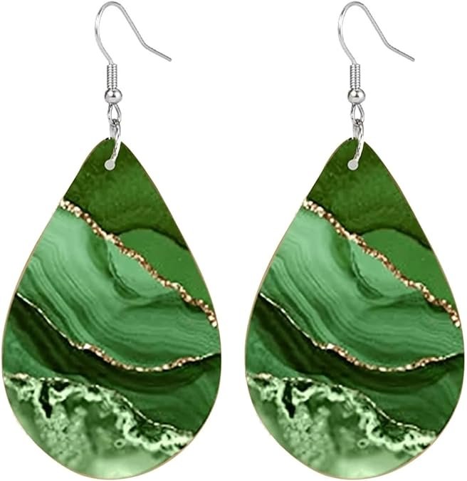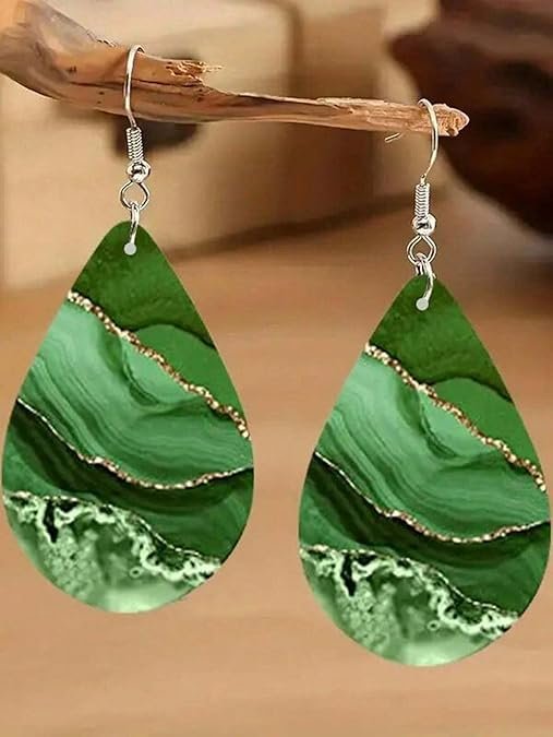 2 Pair Double-Sided Printed Wooden Teardrop Earrings